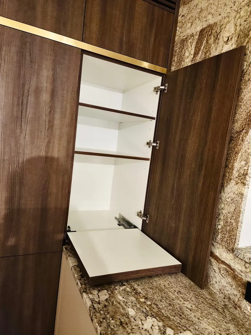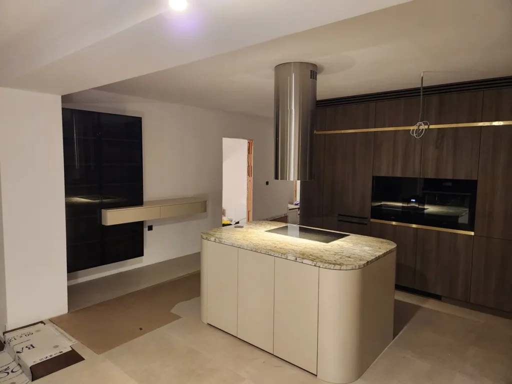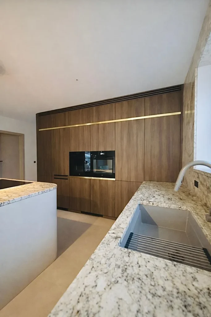 Das Ergebnis ist ein elegantes und funktionales Interieur, das modernes Design, hochwertige Materialien und präzise Handwerkskunst zu einem harmonischen Ganzen verbindet, das auf die Bedürfnisse des Kunden zugeschnitten ist.
