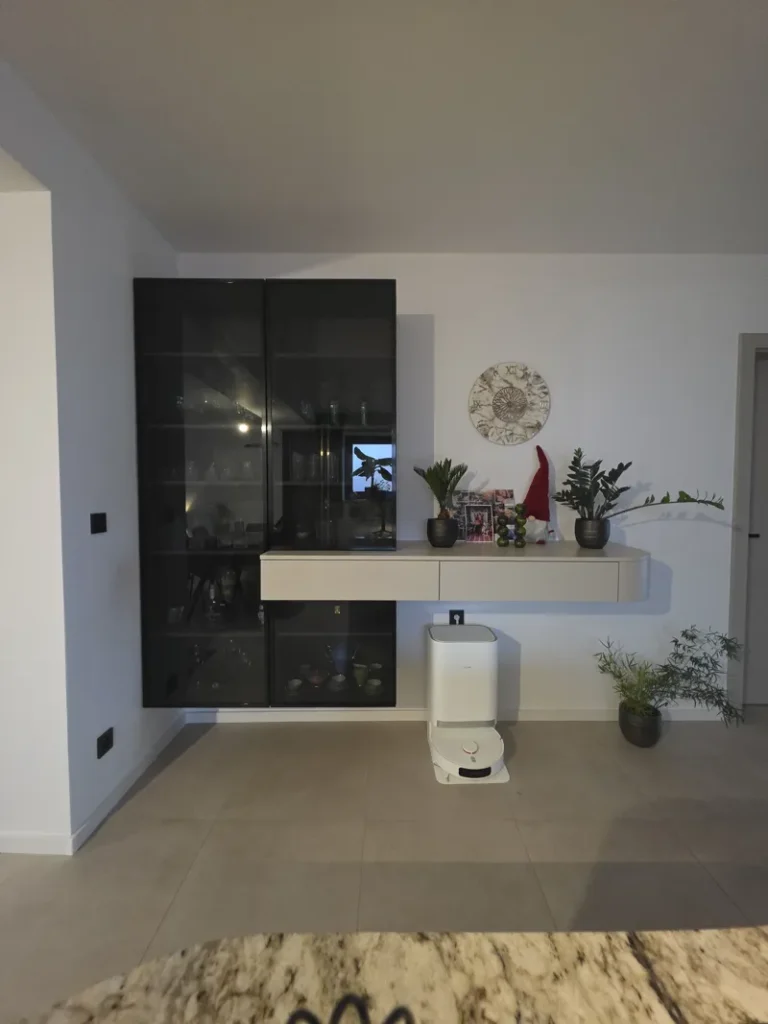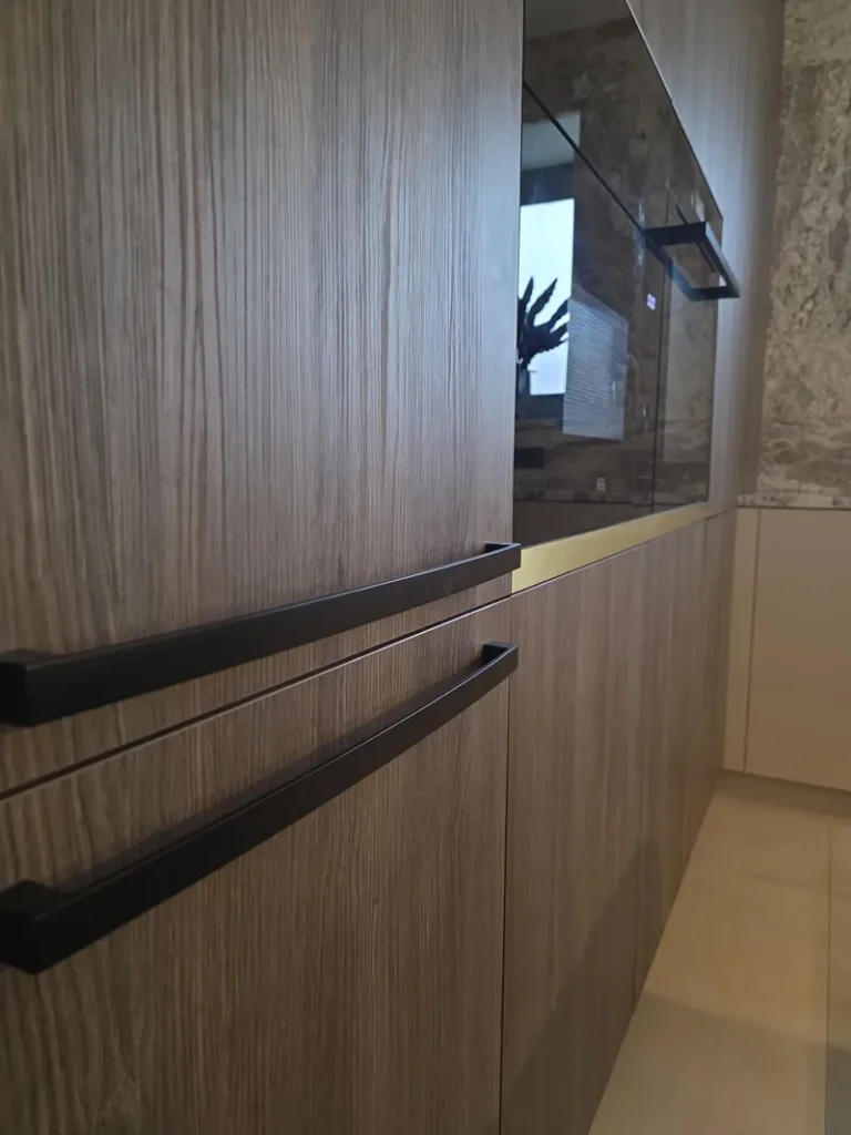 In einem Einfamilienhaus in Rača haben wir den Entwurf und die Herstellung einer Küchenzeile realisiert, die mit dem Wohnbereich verbunden ist. Bei der Gestaltung des Interieurs wurde Wert auf zeitloses Design, hochwertige Materialien und präzise handwerkliche Verarbeitung gelegt.