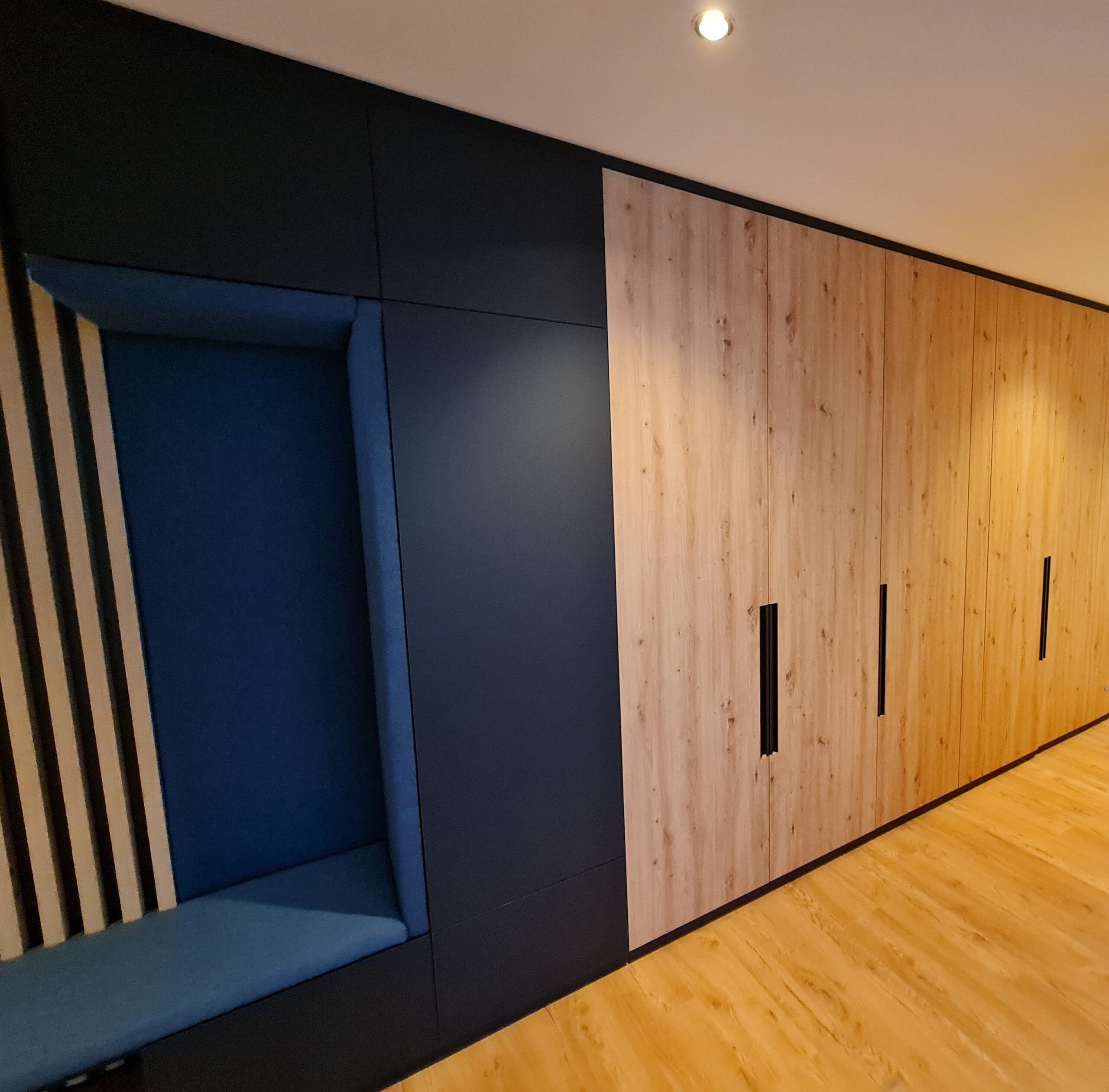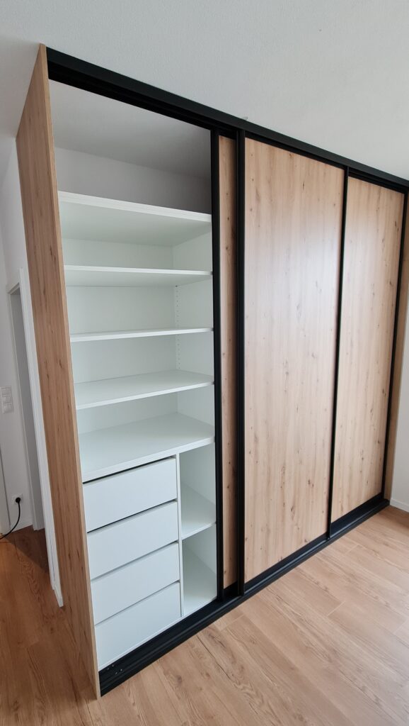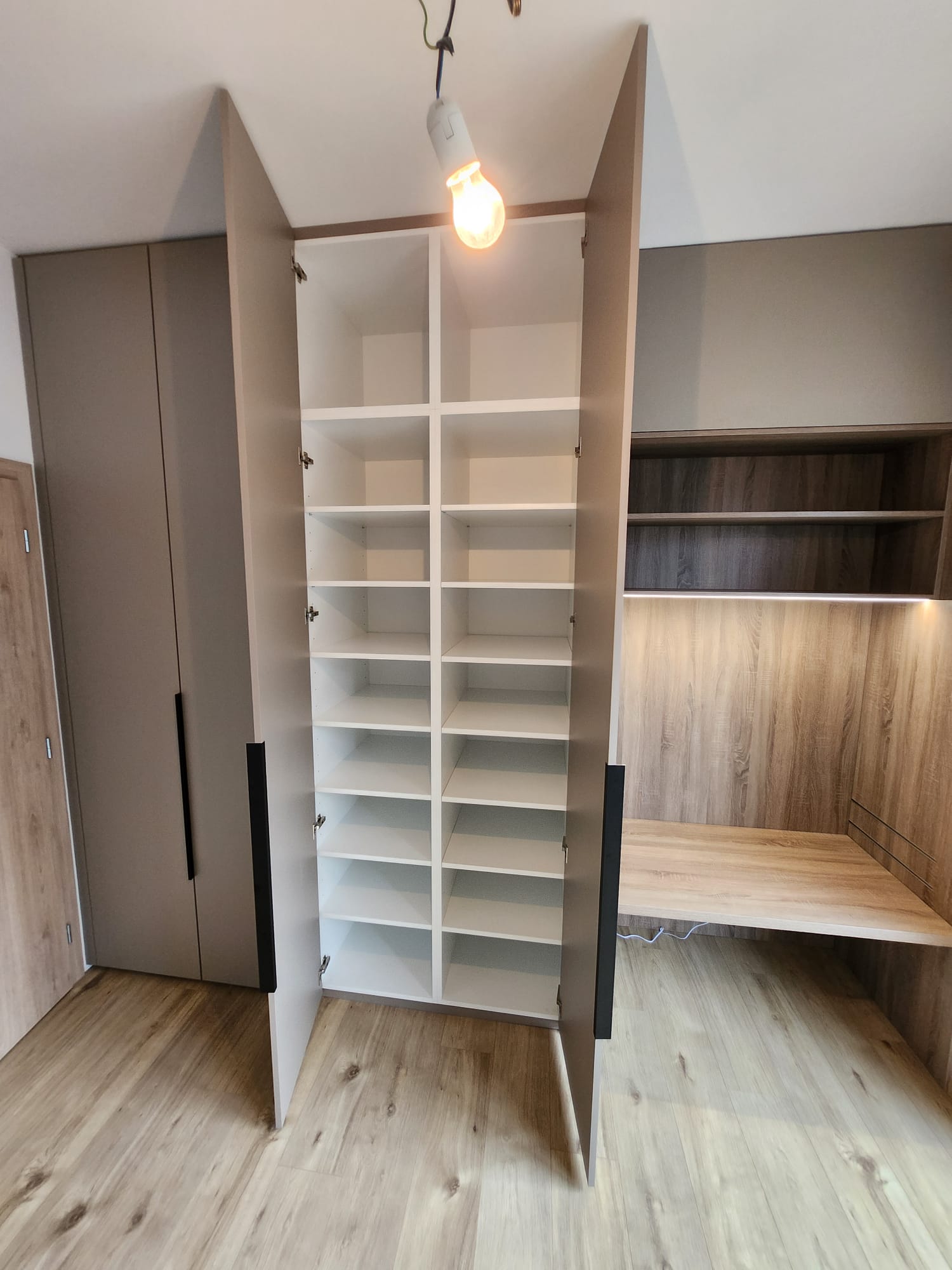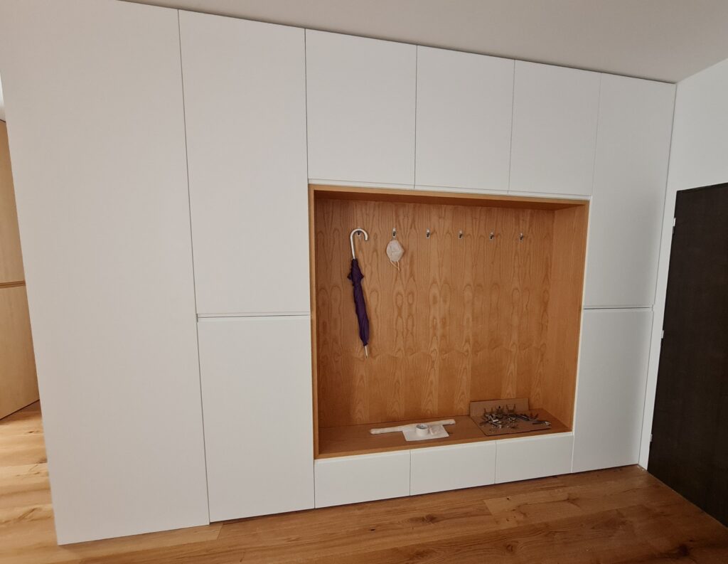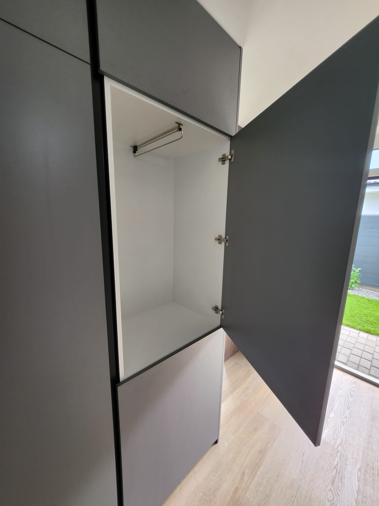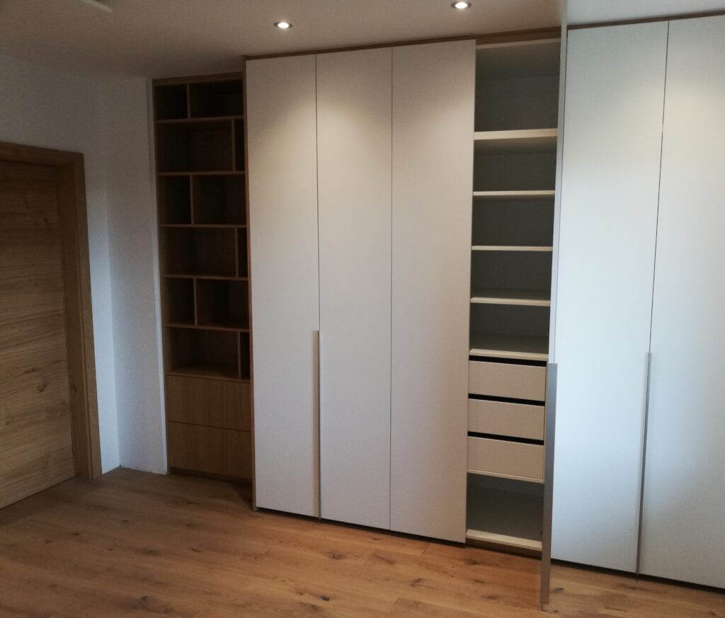 Ein maßgeschneiderter Kleiderschrank bringt Ordnung, Übersichtlichkeit und Eleganz in Ihr Zuhause. Wir entwerfen Lösungen, die den Raum optimal ausnutzen und gleichzeitig ästhetisch ansprechend sind.
