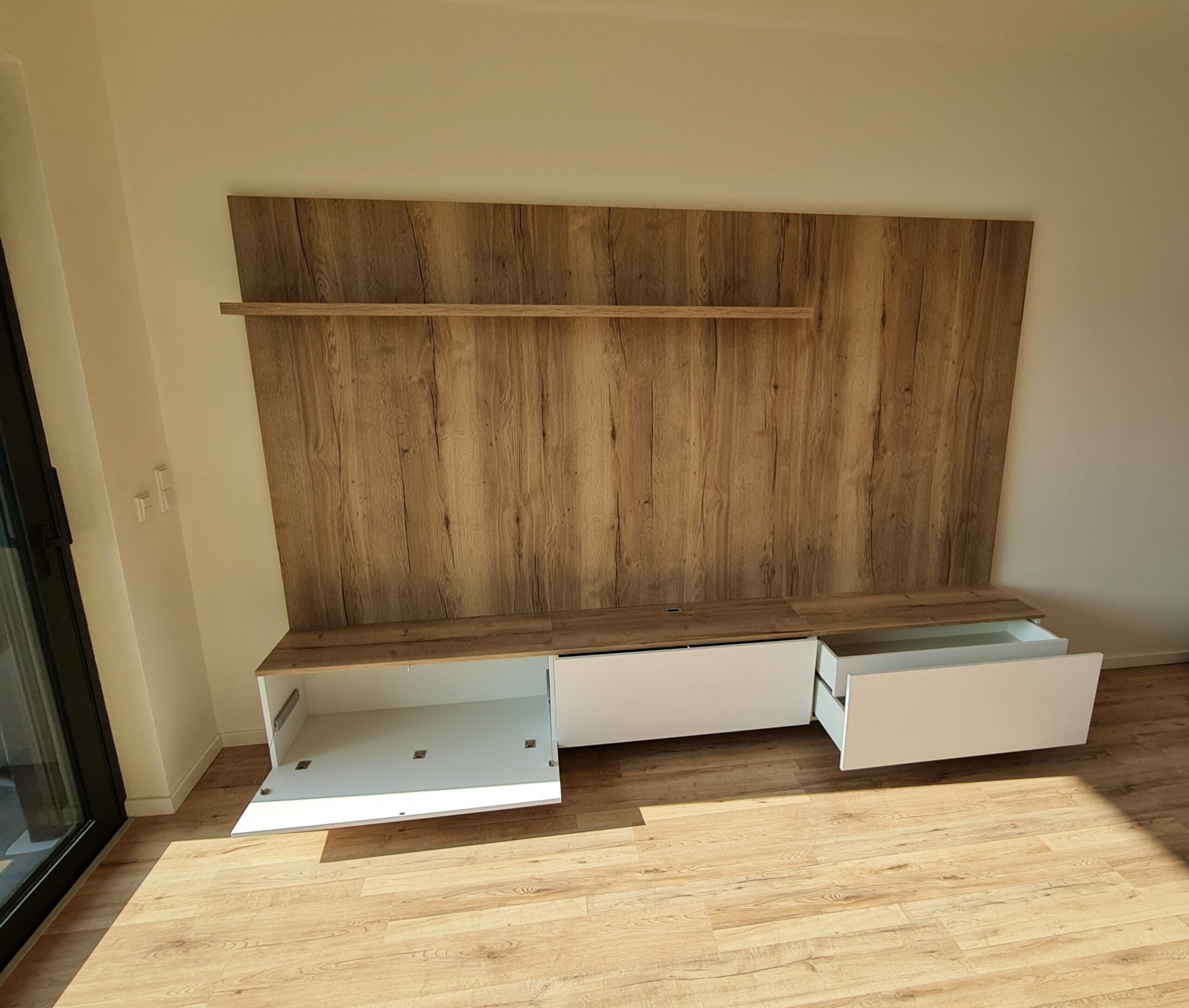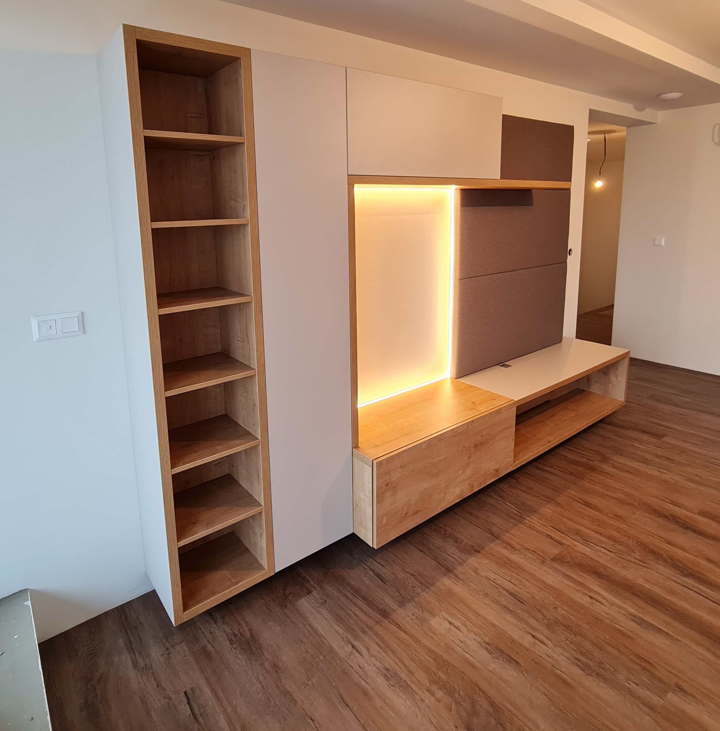 Naša stolárska výroba vám umožňuje vybrať si každý detail – od dreva, povrchovej úpravy a farieb až po moderné technológie, ako sú integrované LED systémy či skryté úložné riešenia.